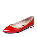 Tata/他她2016春季女鞋漆牛皮革时尚铆钉方跟低跟浅口女单鞋(34,红色)